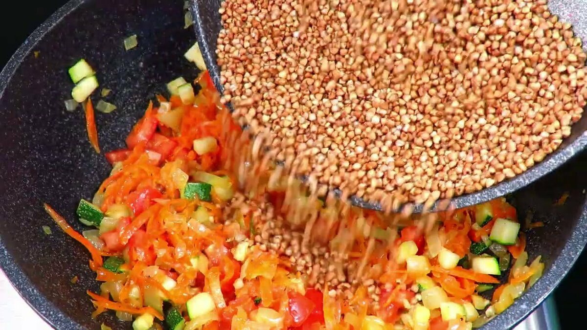 Сьогодні приготуємо смачну страву з гречки. Гарнір з овочами виходить соковитим і розсипчастим. Страва підійде для тих хто худнуть або постять – тому що в ньому немає м’яса і тваринних жирів. Смачна, легка, соковита і корисна страва з гречки готується швидко і просто.