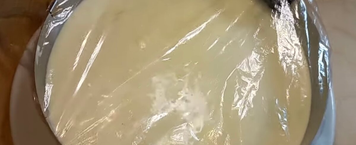 Кладемо зверху другий бісквіт і поливаємо кремом, що залишився. Накриваємо харчовою плівкою і прибираємо в холодильник на 2-3 години.