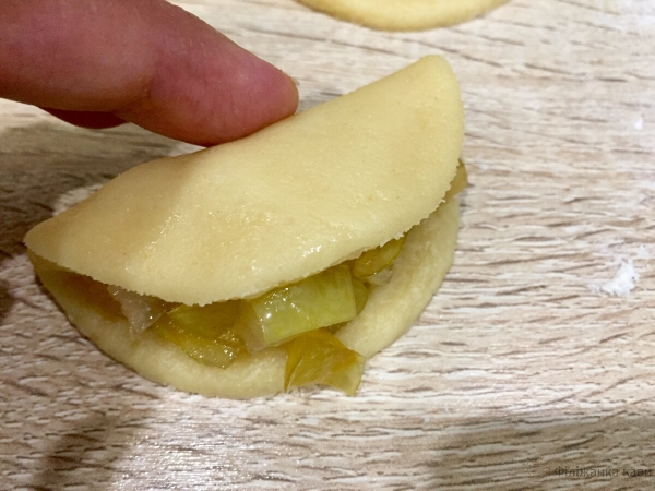 Піднімаємо тісто з порожнього краю і накриваємо яблука. Не защипуємо, не ховаємо начинку.