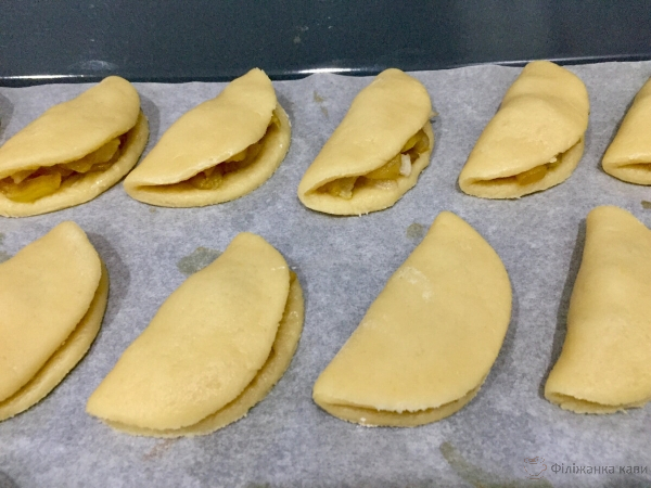 Печиво розкладаємо на деку. За бажанням можна змастити збитим яйцем.