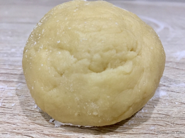 Підсипаємо борошно і замішуємо круте тісто, скочуємо в кулю.