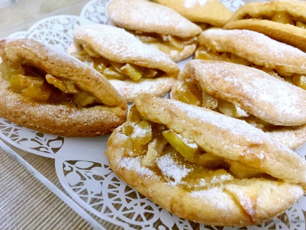 Гарно виглядають, більше схожі на тістечка, хоча це дуже просте в приготуванні печиво з яблуками. Тісто пісочне, але в ньому немає жодного яйця.
