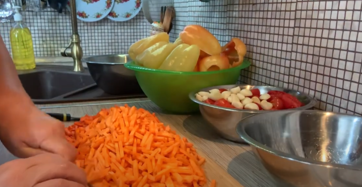 2) Болгарський перець і моркву, нарізати соломкою (великою).