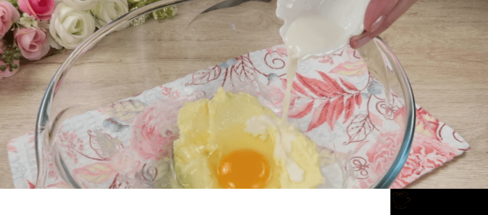 Перетираю інгредієнти лопаткою. Розбиваю одне яйце та додаю одну ст. л. молока.
