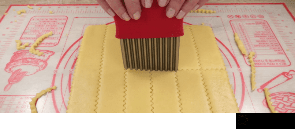 За допомогою ножа для фігурної нарізки овочів поділяю його на квадратики.