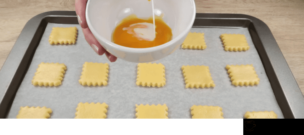 Покриваю зверху печиво жовтком, змішаним із 1 ст. л. молока