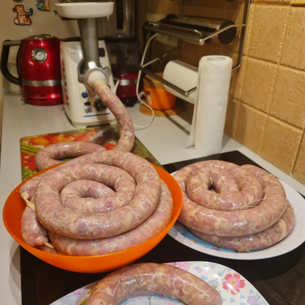 #ДОМАШНЯ КОЛБАСА🔥 у мене куряча. На вихідних зробили відразу багато і в морозилку, потім запікаємо чи коптимо. Багато дівчат готували і переконалися, що крутити ковбаску зовсім не складно. Для новеньких нагадаю!