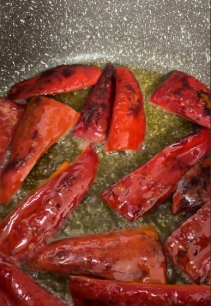 Перець нарізаємо часточками ✅, часник через прес