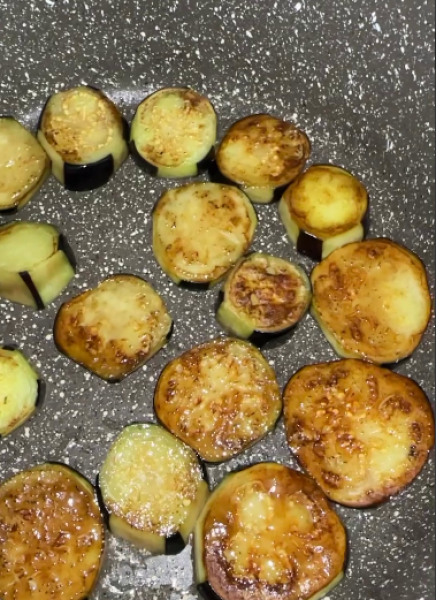 Баклажани (після того як висохли) обсмажуємо з двох сторін на соняшниковій олії.