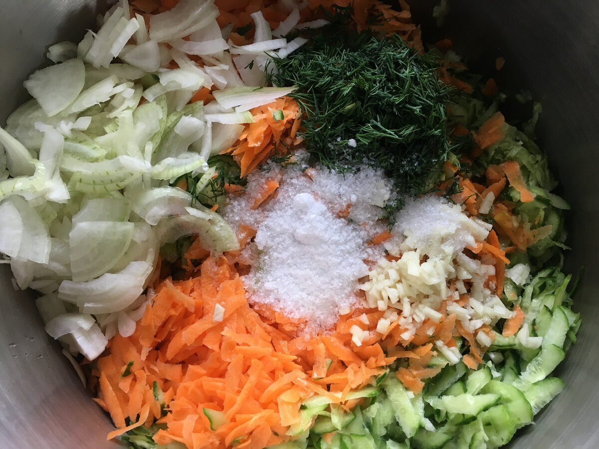 Перемішую всю цю красу і залишаю просто постояти мінімум на 2 години для виділення соку і змішування смаків і запахів.