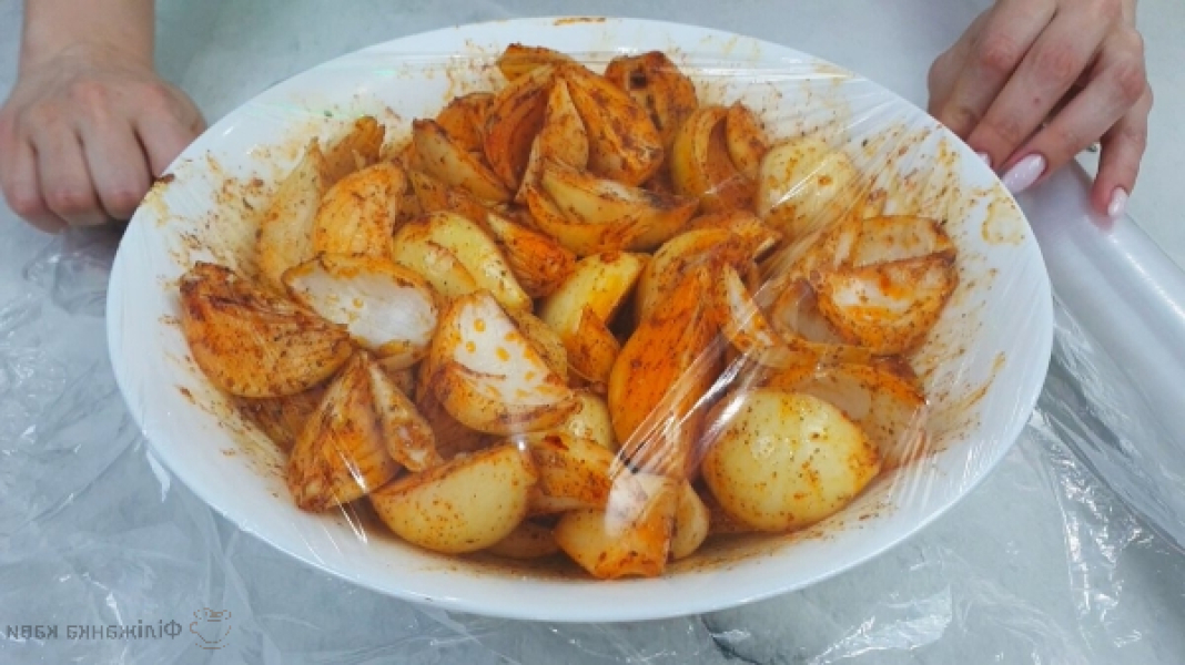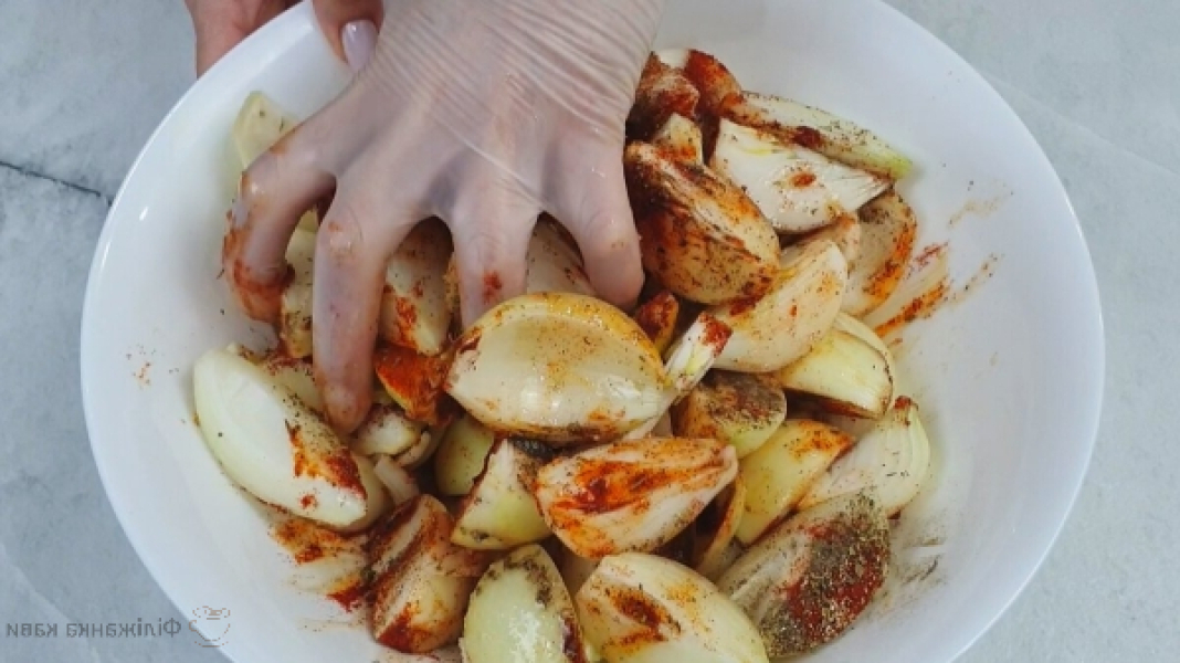 Накриваємо миску з цибулею харчовою плівкою і ставимо в холодильник маринуватися на 1 добу.