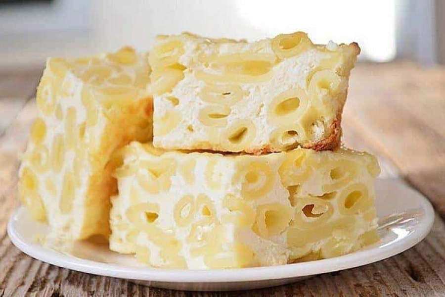 Приготування: Збий яйця з цукром і сіллю, додай сир, сметану і макарони. Виклади масу в змащену форму і постав на 20 хвилин в розігріту духовку.
