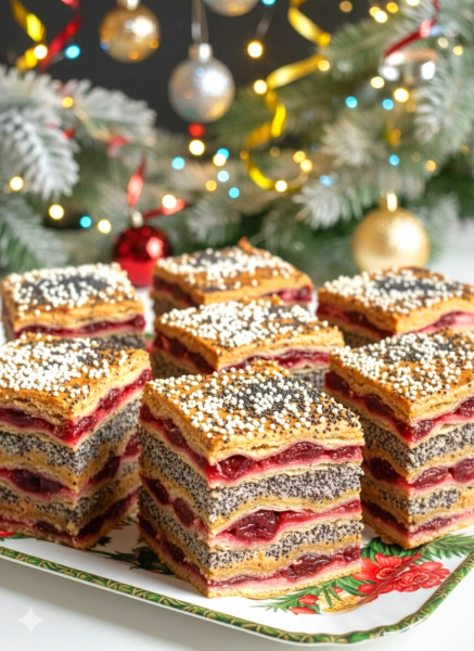 На форму викласти тісто – безе – вишні – тісто. Спекти таких 3 коржі. При 175° приблизно 20 хвилин.