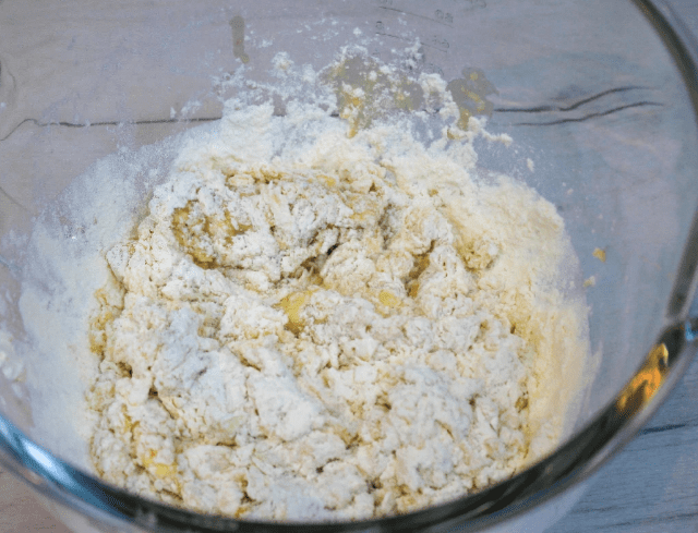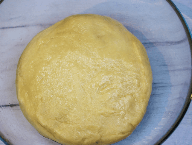 - Додати борошно (450 г, може знадобитися трохи більше) і зібрати тісто в грудку.