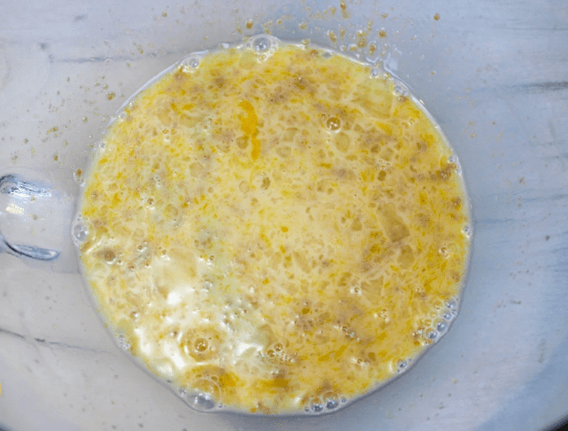 - Додаємо цукор, ванільний цукор, перемішуємо та подрібнюємо мак занурювальним блендером, зручніше це робити у високій мірній склянці. Повинна вийти в’язка маса. Потім додати білок, перемішати. Залишаємо начинку до повного остигання. Начинку можна приготувати напередодні та зберігати у холодильнику.