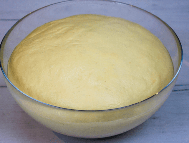 - Миску з тістом накрити поліетиленовою плівкою і залишити в теплі на 1,5 години, для підйому.