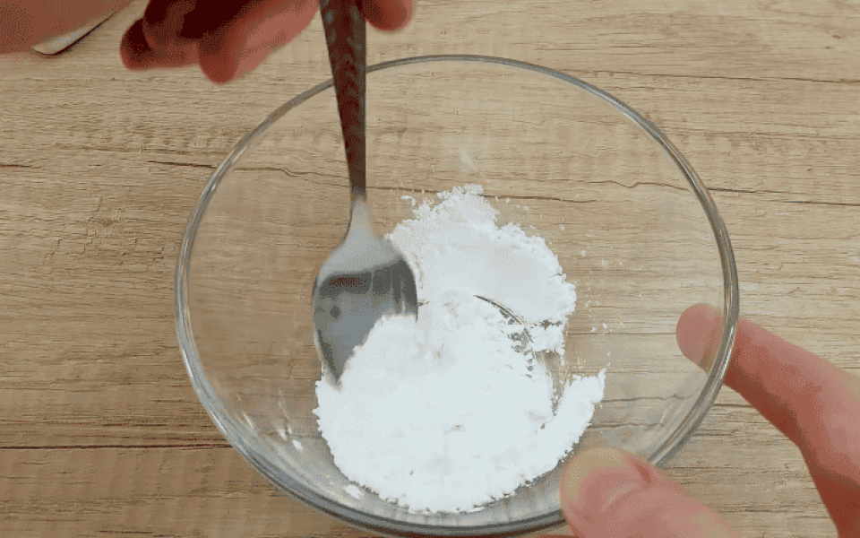 Змішайте 1 столову ложку кукурудзяного крохмалю+1 столова ложка цукрової пудри