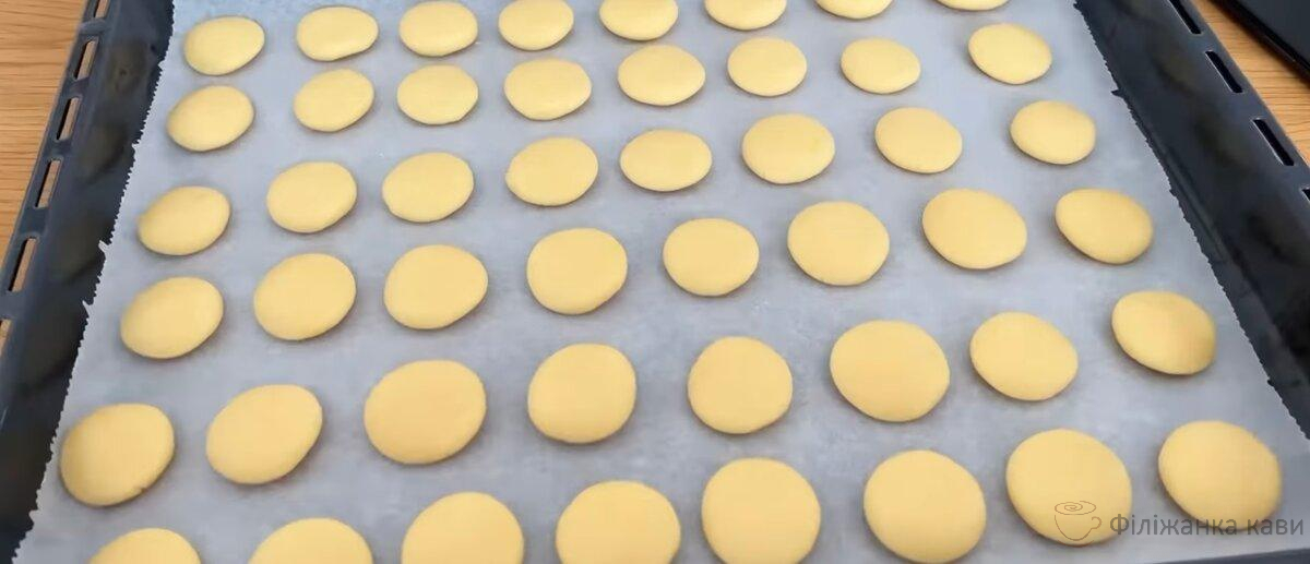 Формуємо кульки маленьких розмірів і злегка придавлюємо. Кладемо кругляші на деко, вистелене пергаментним папером. Відправляємо в розігріту до 180 градусів духовку – на 15 хвилин.
